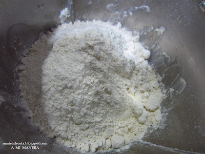 (Yo he separado la masa en dos, y a una de las mitades le he añadido un par de cucharadas de colacao para hacerlas con un saborcillo a chocolate).
